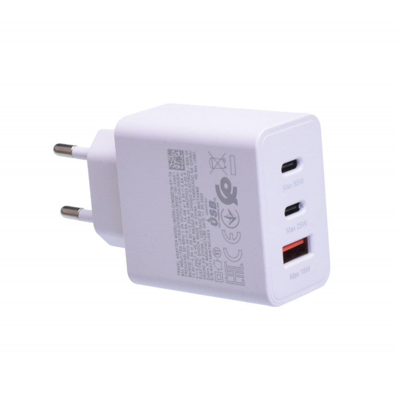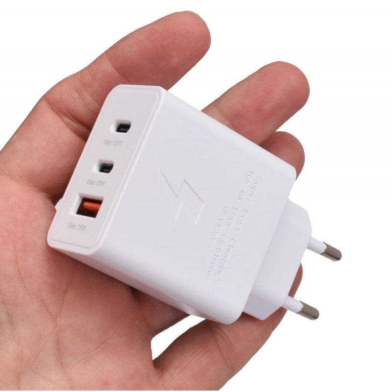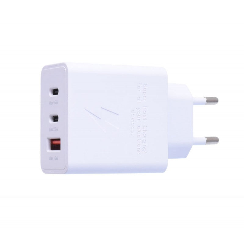 VTM бързо зарядно устройство. 65W PD Trio, 2 x Type C + Usb 2.0, бял