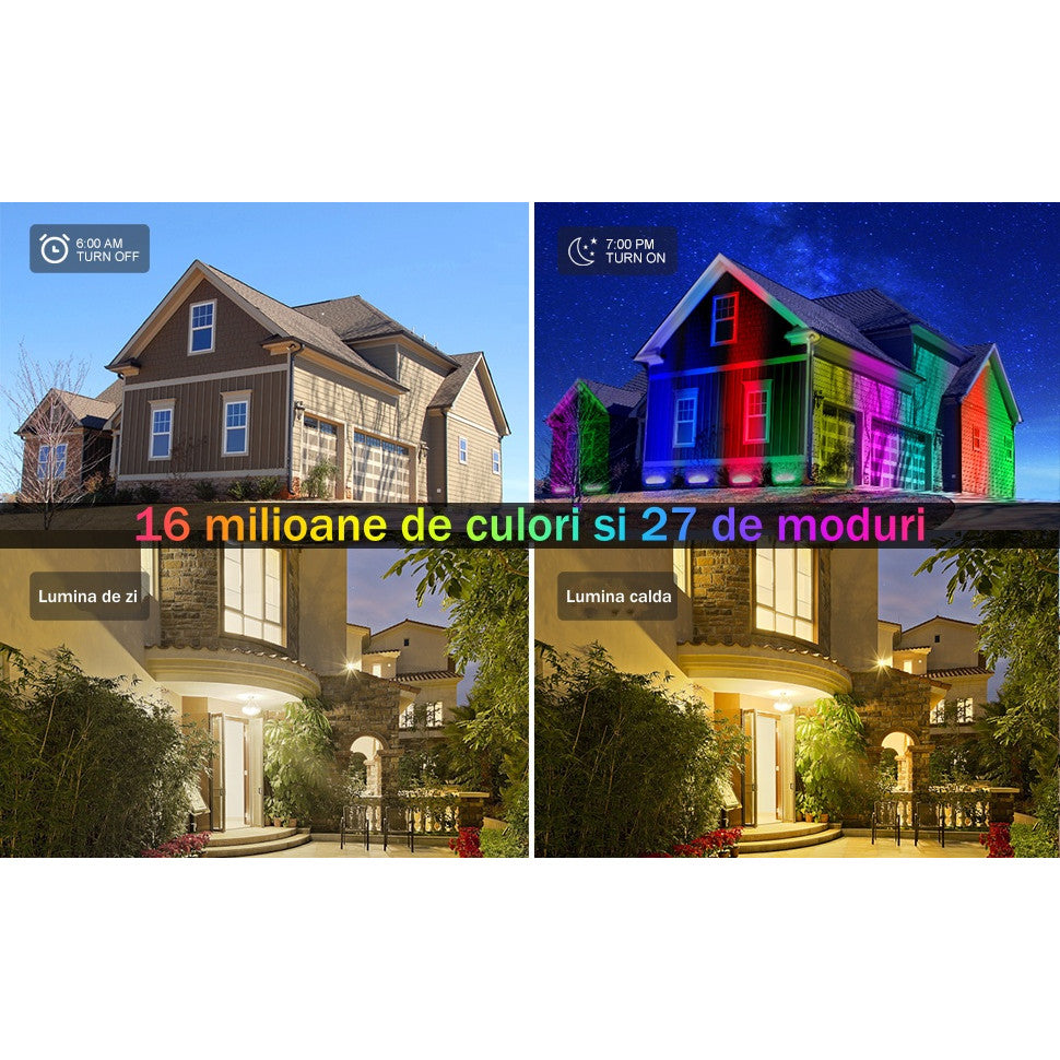 Този 72W RGBCW 5-в-1 LED RGB проектор е направен от 24 броя светодиоди с висока яркост и IP65 водоустойчив първокласен алуминиев корпус, което го прави не само за употреба на закрито, но и идеален за употреба на открито. Има 16 милиона цвята и 27 режима на светлинни ефекти, чудесни за парти, сватба, сцена, хотел, градина, пейзажно осветление или празнични декорации.