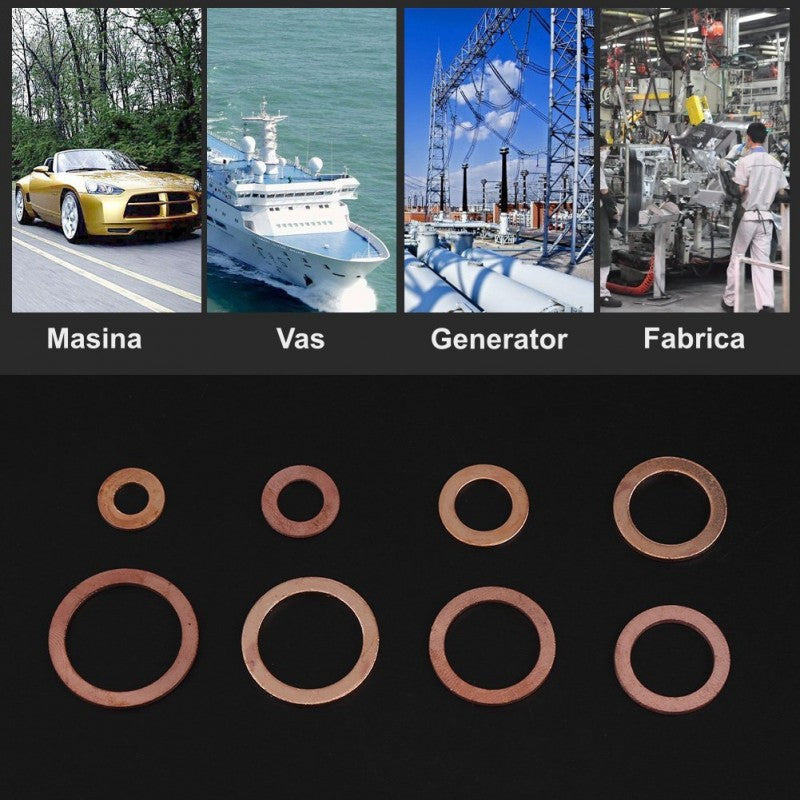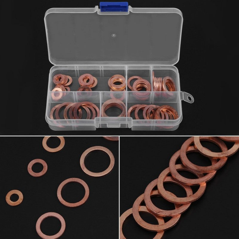 Този комплект медни шайби е от съществено значение за всеки водопроводчик или автомонтьор. Независимо дали работите по инсталации или извършвате интервенции по превозни средства, този комплект ви предлага широка гама от размери, за да осигурите плътността на тръбите.