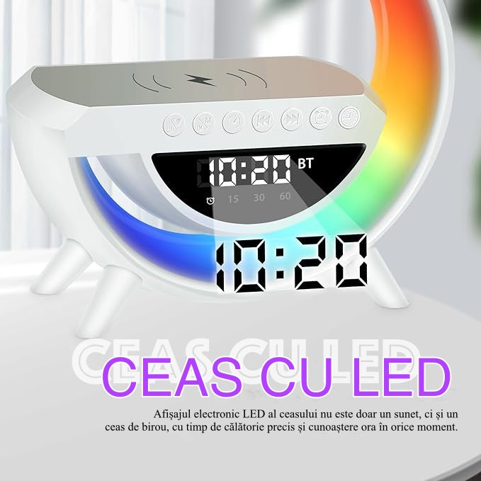 Ceas Digital cu Încărcare Wireless și Boxă Bluetooth – Funcții Avansate pentru Un Stil de Viață Modern