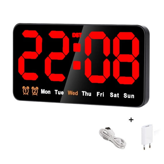 Ceasul digital de masă și perete cu afișaj LED roșu este perfect pentru orice cameră, combinând funcționalitate avansată cu un design modern. Cu dimensiunile sale de 11x21 cm, acest ceas oferă un display clar care include alarmă, calendar, senzor de temperatură și funcție snooze, ideal pentru birou sau dormitor. Mod de noapte pentru un somn neperturbat!