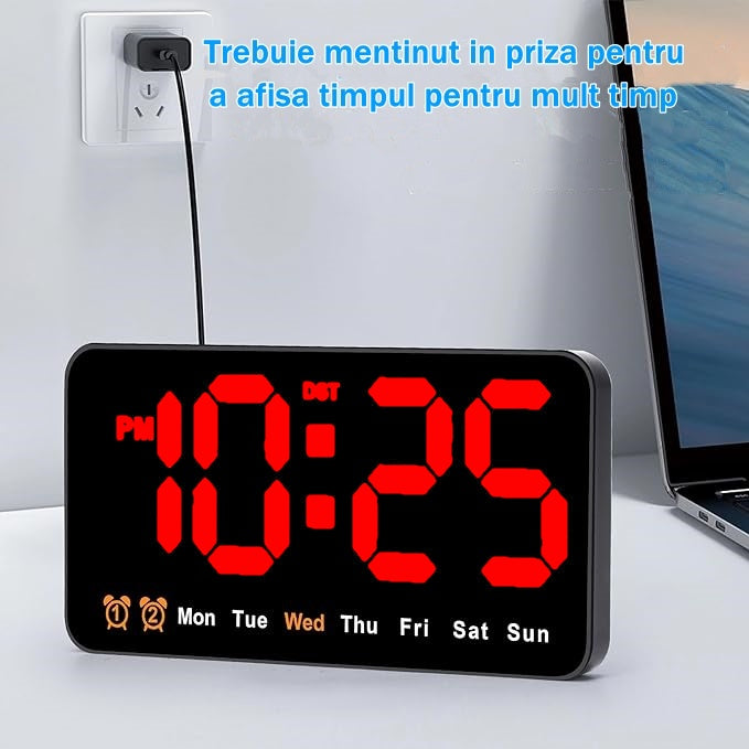 • Alarma Integrată – Permite setarea ușoară a alarmelor pentru trezire sau memento-uri.