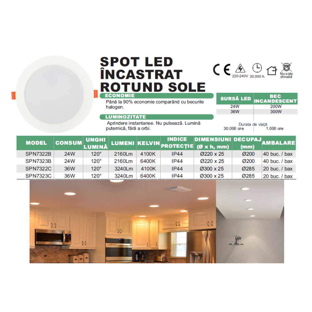 Spot LED Rotund Îngropat Ø220mm, 24W, 4100K – Iluminat Neutru pentru Interior, Spații Comerciale și Locuințe
