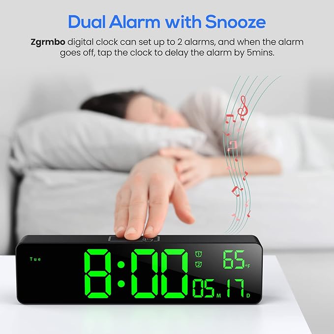 Ceas Digital de Masă și Perete 26x6cm cu Afișaj LED Verde – Cronometru, Timer, Alarmă, Funcție Snooze și Temperatură cu Luminozitate Ajustabilă