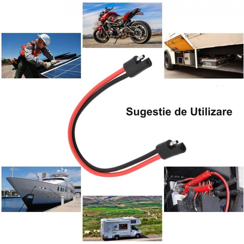 Conectori Mufă SAE 12AWG pentru Panou Solar și Baterie Auto – Cablu de 30cm pentru Conexiuni Electrice Fiabile