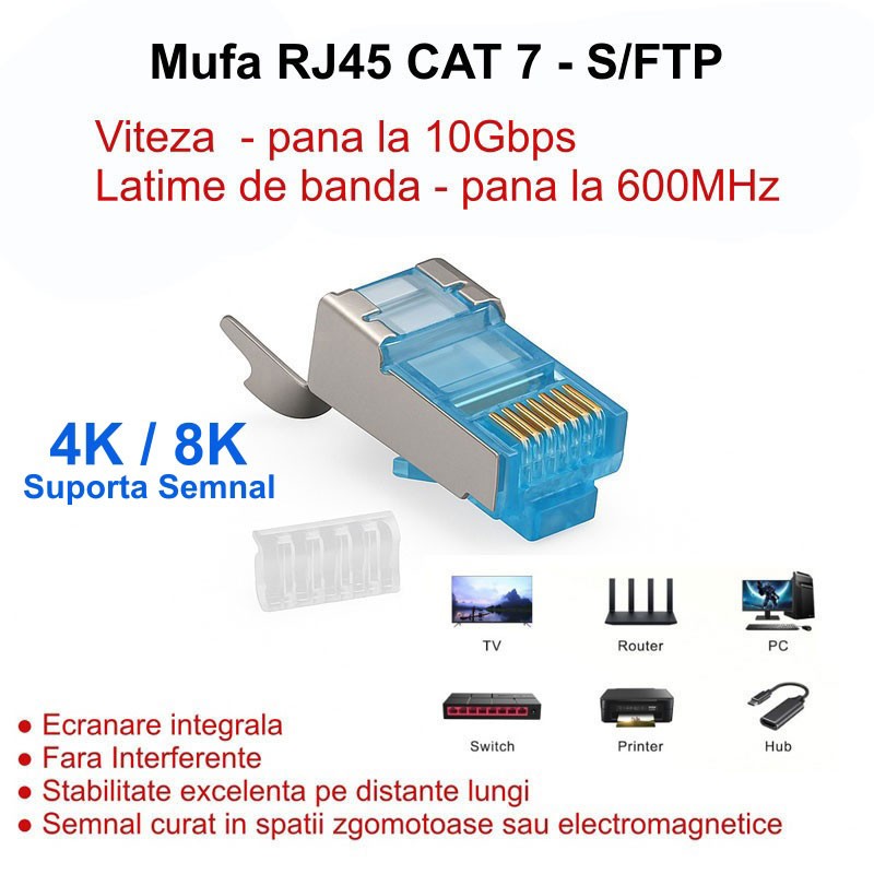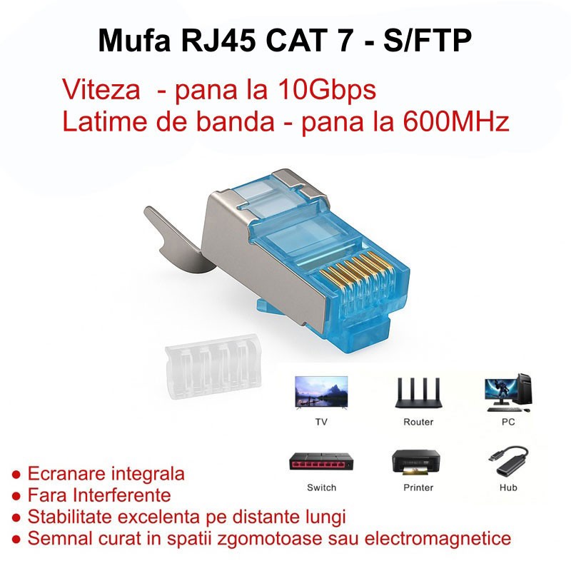 Într-o eră în care conectivitatea rapidă și fiabilă este esențială pentru funcționarea optimă a afacerilor, mufa RJ45 S/FTP CAT 7 Albastru cu Ecranare Metalică reprezintă soluția perfectă pentru profesioniștii din domeniul rețelisticii. Acest set de 50 de mufe este proiectat să satisfacă cele mai exigente cerințe de performanță, asigurând o conexiune stabilă și de înaltă viteză.
