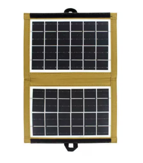 Panou Solar Portabil CL-670 cu Încărcare USB 7.2W – Pliabil cu Husă Textilă Maro pentru Camping, Drumeții și Activități în Aer Liber