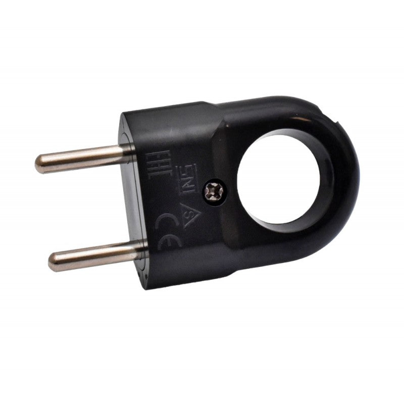 Ștecher Plat Negru cu Inel 10A – Conector Electric Versatil pentru Acasă și Birou
