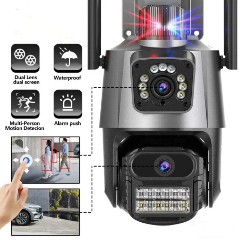 Cameră de Supraveghere Duală WiFi 8MP Ultra HD cu 5X Zoom – Protecție Completă pentru Casa și Afacerea Ta