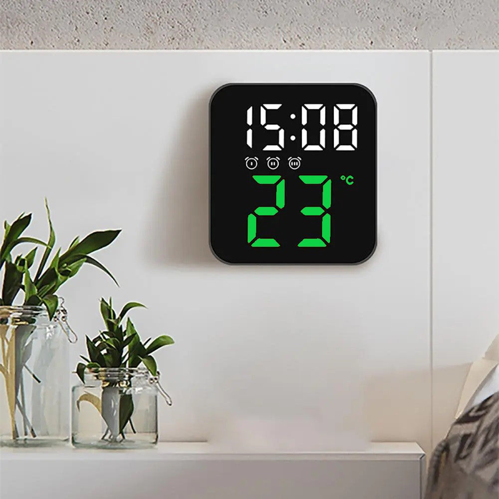 This digital table clock has a brightness adjustment option, allowing you to adjust the light level of the display according to the light conditions in the room or your personal preferences.