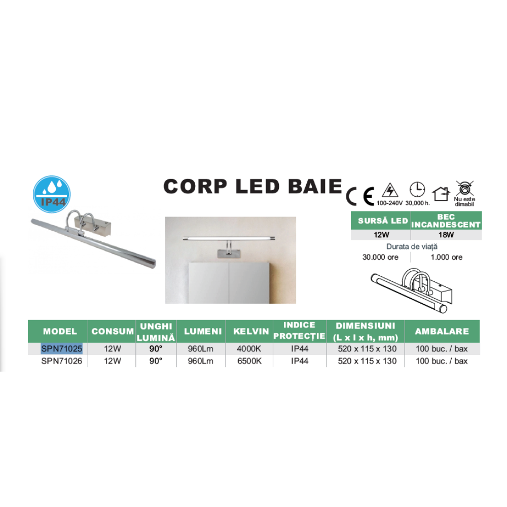 • Protecție IP44 – Siguranță maximă în spații umede precum băile.