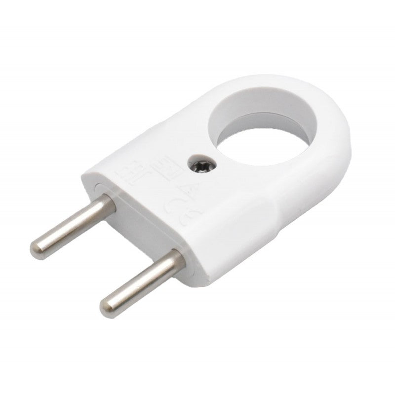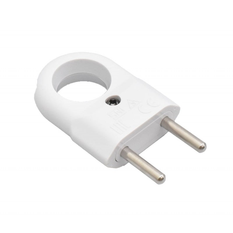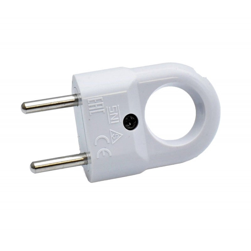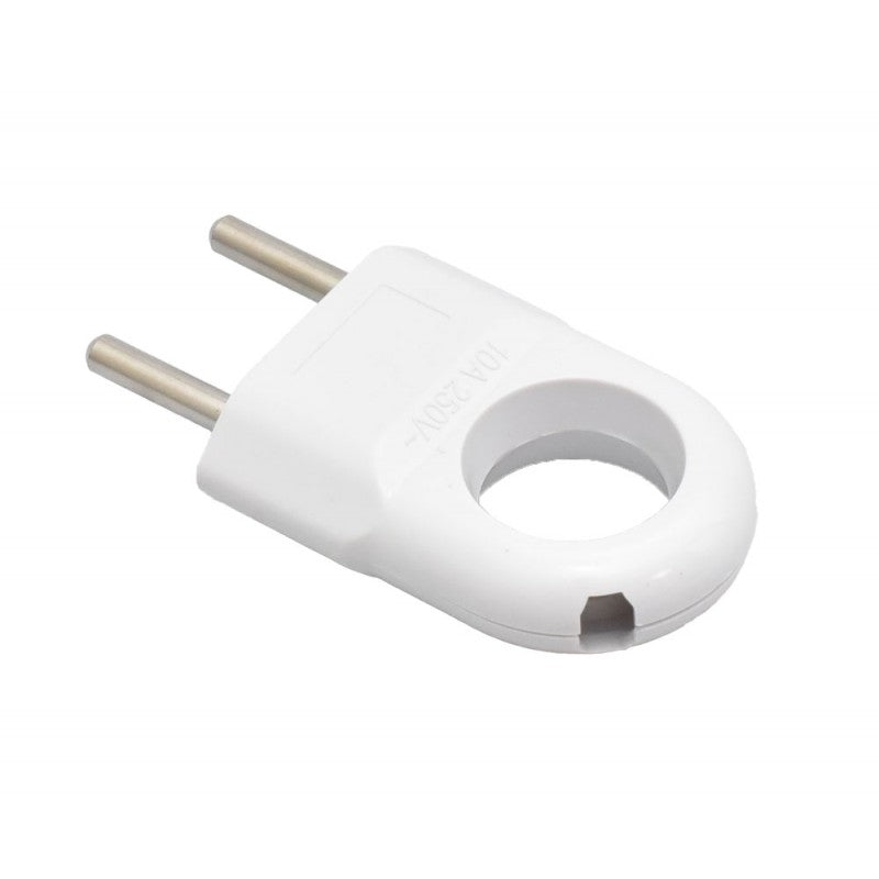 Stecher Plat Alb cu Inel 10A – Conector Electric Ideal pentru Utilizare Acasă sau Birou