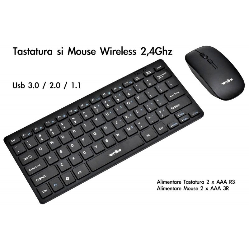 Set Tastatură și Mouse Wireless WB-8068 – Accesorii Ergonomice pentru Birou, Conectivitate Stabilă și Design Modern