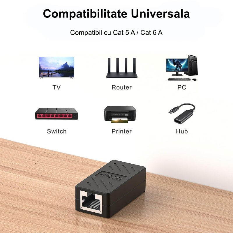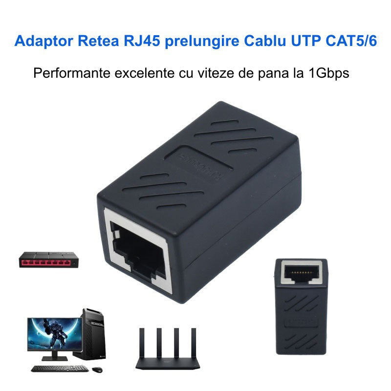 Adaptor RJ45 UTP Mama-Mama Negru CAT5/6, Cupla Rețea Ethernet