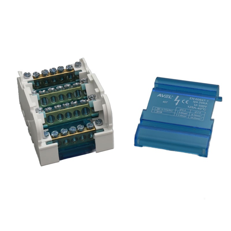- 1 x elektromos elosztó blokk 407 - 125 A / 500 V 1,5-16 mm / 2,5-25 mm