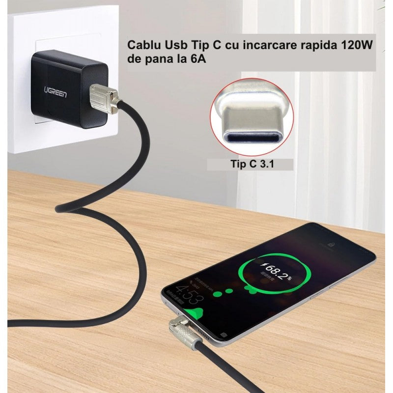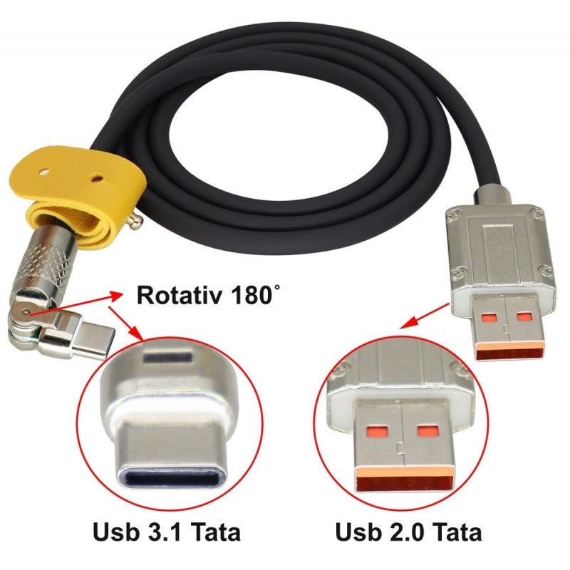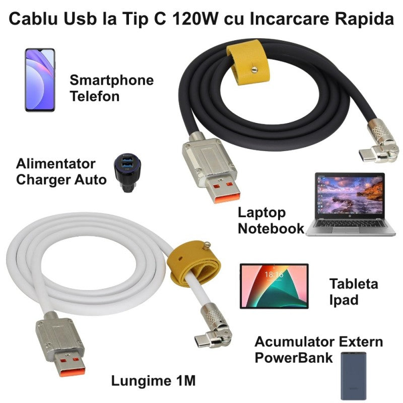 Kiváló minőségű szilikonból készült, szupergyors Type-C kábel, amely 180 fokban elforgatható véggel rendelkezik, és akár 120 W-ig gyors töltést tesz lehetővé. Kompatibilis az összes C típusú csatlakozót használó eszközzel, beleértve a telefonokat, táblagépeket, kamerákat/porszívókat, laptopokat és még sok mást.