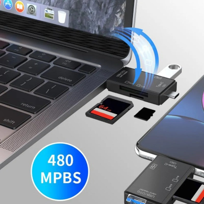 Kompakt és könnyen hordozható kártyaolvasó ideális otthoni, irodai vagy utazási használatra. Ne veszítse el az időt a lassú adatátvitellel – a 6 az 1-ben OTG kártyaolvasóval gyorsan és hatékonyan kezelheti adatait.