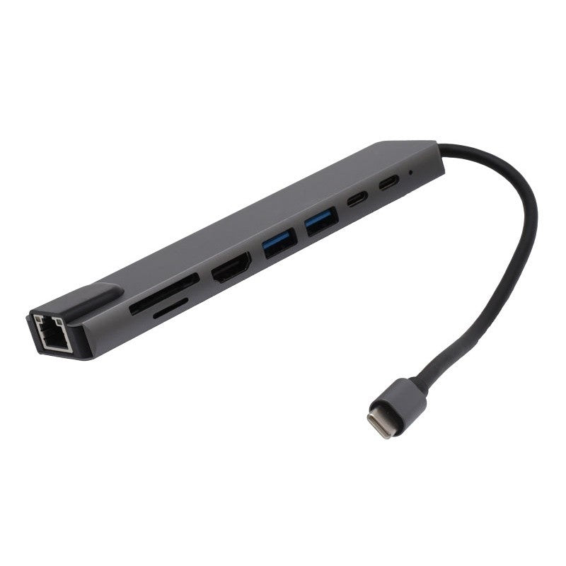 HUB ADAPTER 8 AZ 1-BEN C TÍPUSÚ HDTV-HEZ 4K UHD - PD - RJ45 - TF/SD - USB 3.0