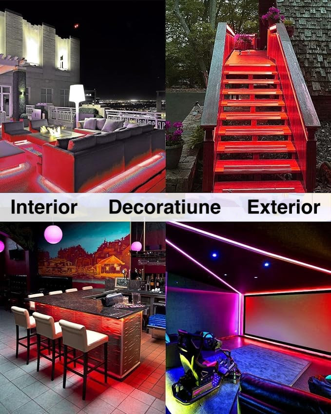 - Lungime generoasă de 5 metri – Permite iluminarea unei suprafețe extinse sau crearea de diverse configurații.