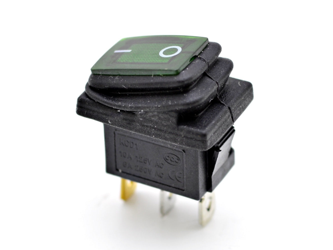 ON/OFF button type switch (1-0) with 3 LED contacts indicating the presence of current.