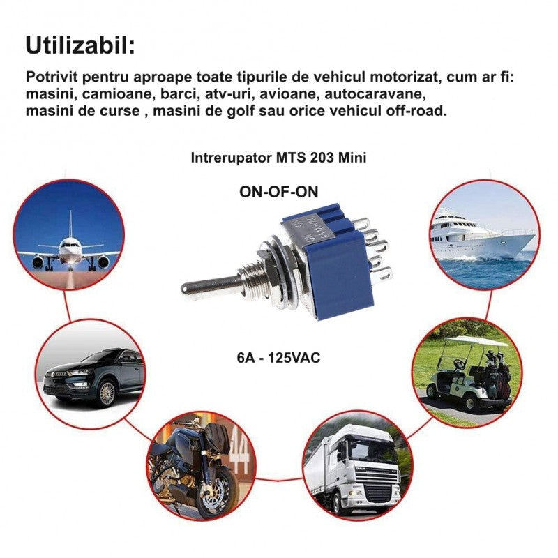 - 1 x Intrerupător Basculant Mini ON-OFF-ON 6C