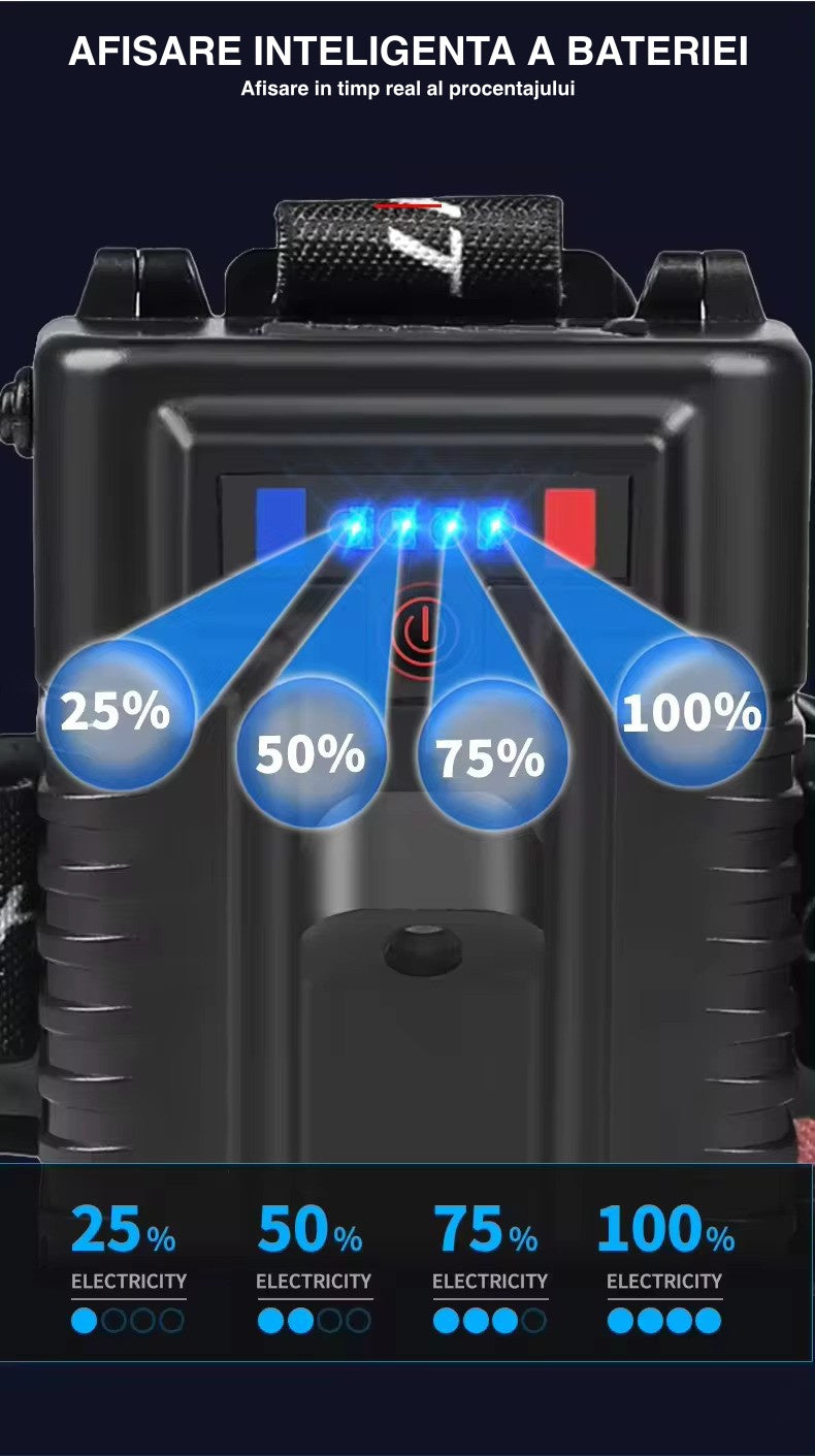Lanterna de Cap Profesională VTM® cu LED – Iluminare Puternică pentru Pescuit, Camping și Vânătoare