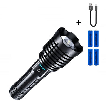 Lanterna Profesională VTM® cu LED - Iluminare pe 1500m, Încărcare Type-C, 4 Acumulatori Incluși, Ideală pentru Pescuit, Camping și Vânătoare