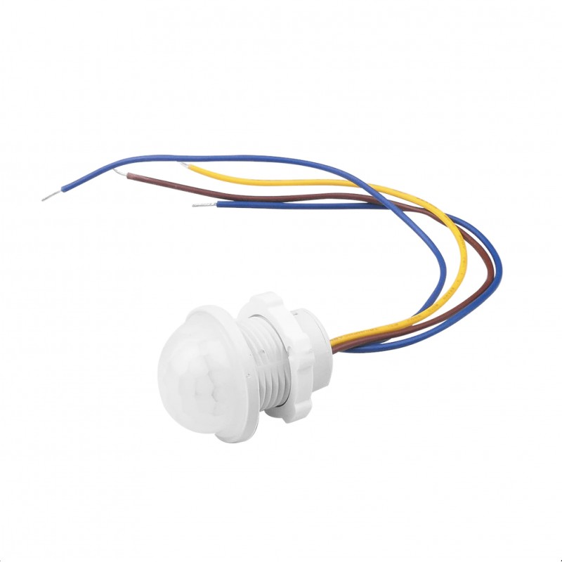 This plastic mini sensor has 4 connection wires, two for power (the long ones) and two for the output (the short ones), with a detection angle of up to 110˚- 120˚.