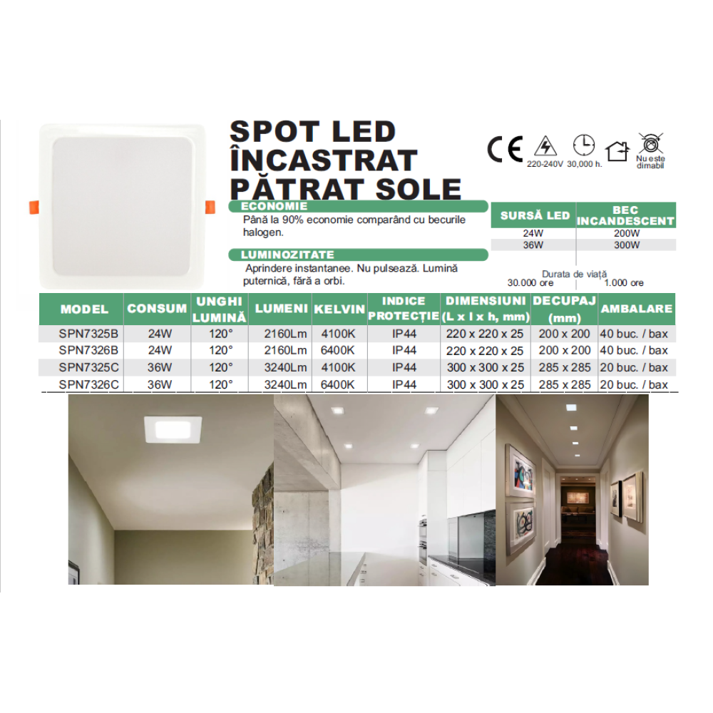 Descoperă spotul LED îngropat pătrat de 220x220mm, cu un consum de doar 24W, ideal pentru iluminatul interior în birouri, camere de zi sau holuri. Acest spot LED oferă o lumina neutră de 4100K, perfectă pentru a crea un mediu confortabil și eficient, având un design modern și elegant.
