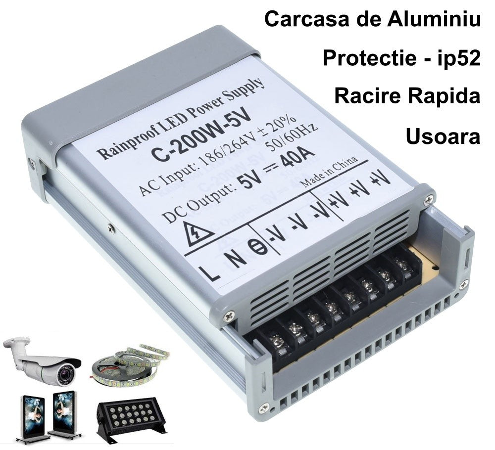 This source outputs a stabilized voltage of 5V and a power of 200W/40A.