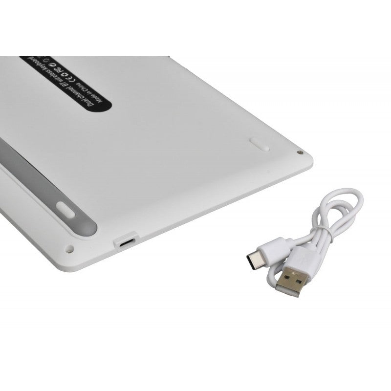 Tastatură Mini Slim Albă cu Bluetooth și Suport pentru Tabletă și Telefon AS-199 – Ideală pentru Birou și Utilizare Mobilă