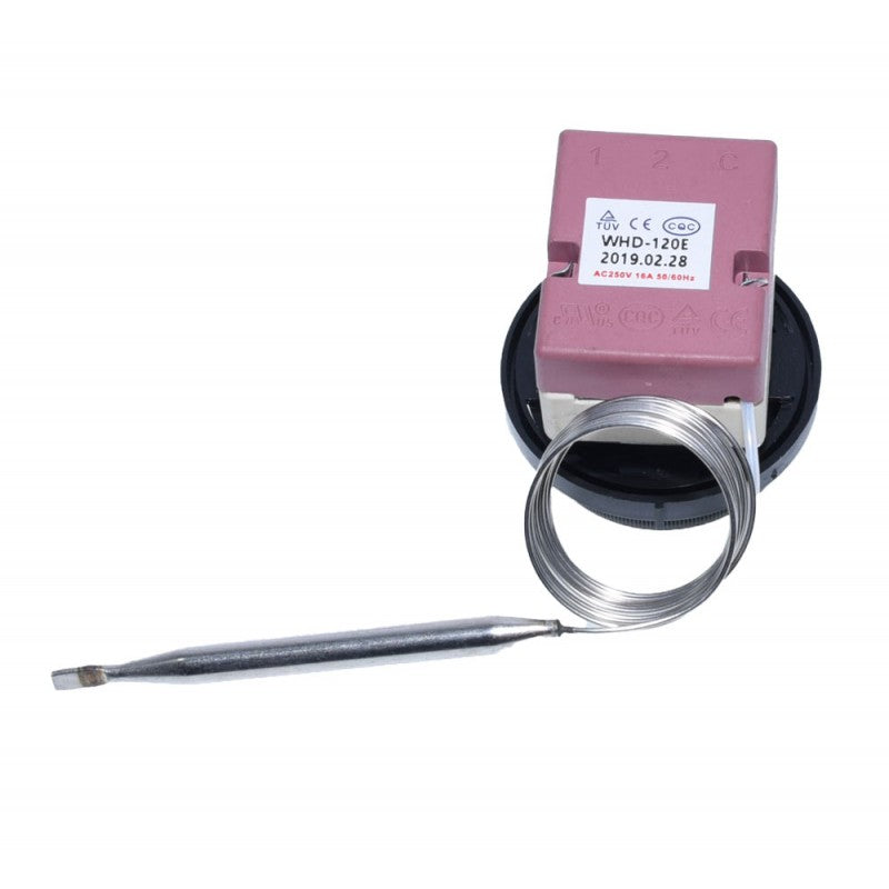 Thermostat with adjustable temperature 30-120˚C with stainless steel probe and capillary.