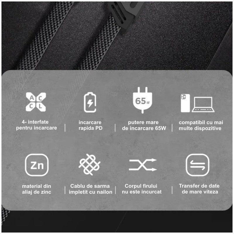 Cablu de Date 4 în 1 Super Fast PD 27W și USB 65W - Încărcare Rapidă pentru iPhone și Alte Dispozitive