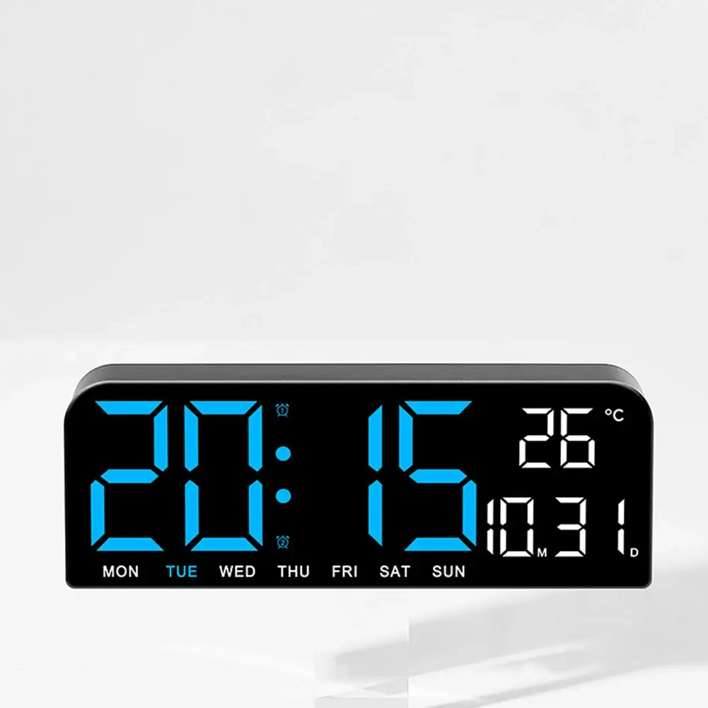 Ceas Digital de Masă și Perete 24x9cm cu LED Albastru – Calendar, Cronometru, Alarmă, Termometru și Funcție Snooze