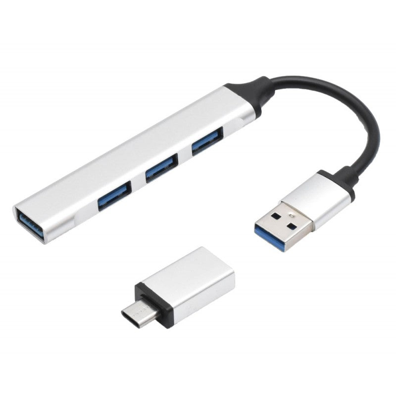HUB USB 3.0 4 în 1 cu Adaptor Tip C – Extinde Conectivitatea Laptopurilor și Dispozitivelor Mobile
