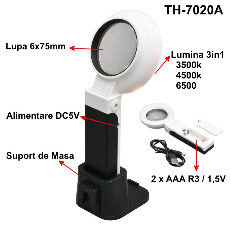 • 1 x Lupa de Mărit 16x50mm cu Lumină, Suport și Alimentare TH-7020A