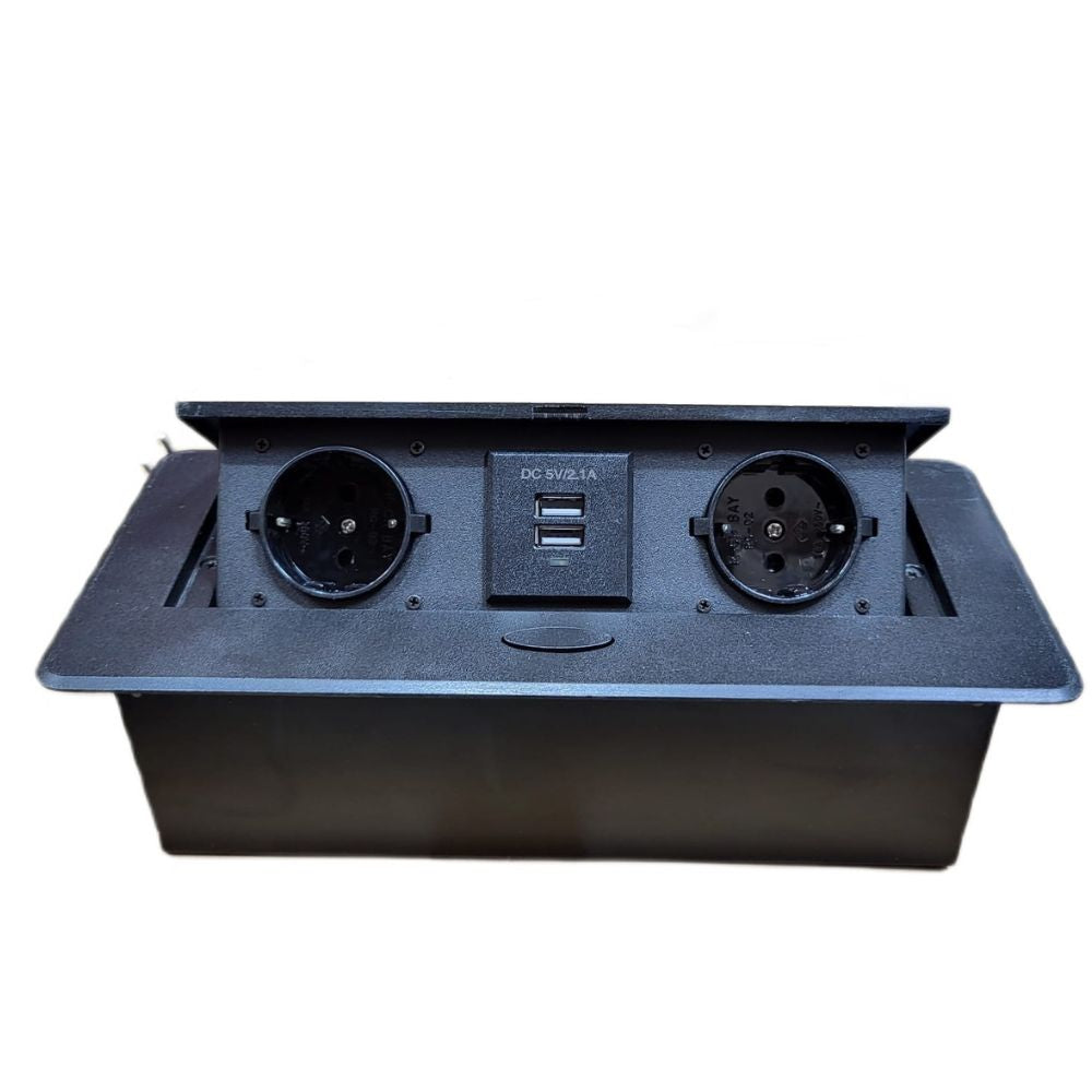 Priză Dreptunghiulară Incastrabilă cu 2 Posturi și Cablu de 2M + USB pentru Birou sau Acasă