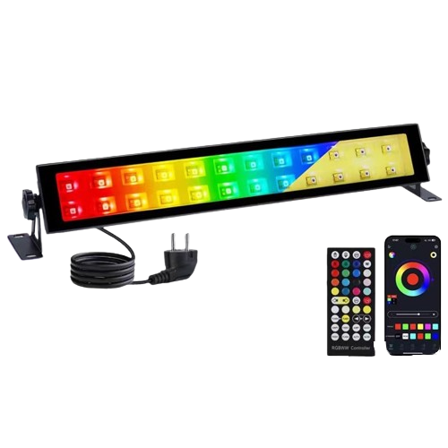 Este un proiector care oferă iluminare în culori RGB, plus alb rece și alb cald, ideal pentru personalizarea atmosferei în diverse spații.