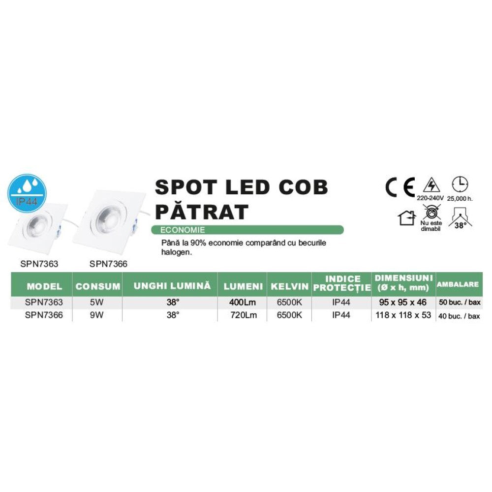 Spot LED COB Pătrat Alb 5W (Echivalent 40W) cu Lumină Rece 6500K – Iluminat Eficient pentru Birou, Spații Comerciale sau Acasă