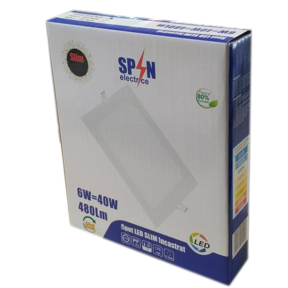 Spot LED Slim Pătrat 120x120mm 6W (40W Echivalent) cu Lumină Rece 6400K – Iluminare Eficientă pentru Birou, Spații Comerciale sau Locuințe