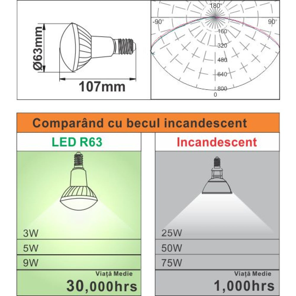 Bec LED E27 R63 9W 2700K - Iluminare Caldă pentru Acasă, Birou sau Spații Comerciale