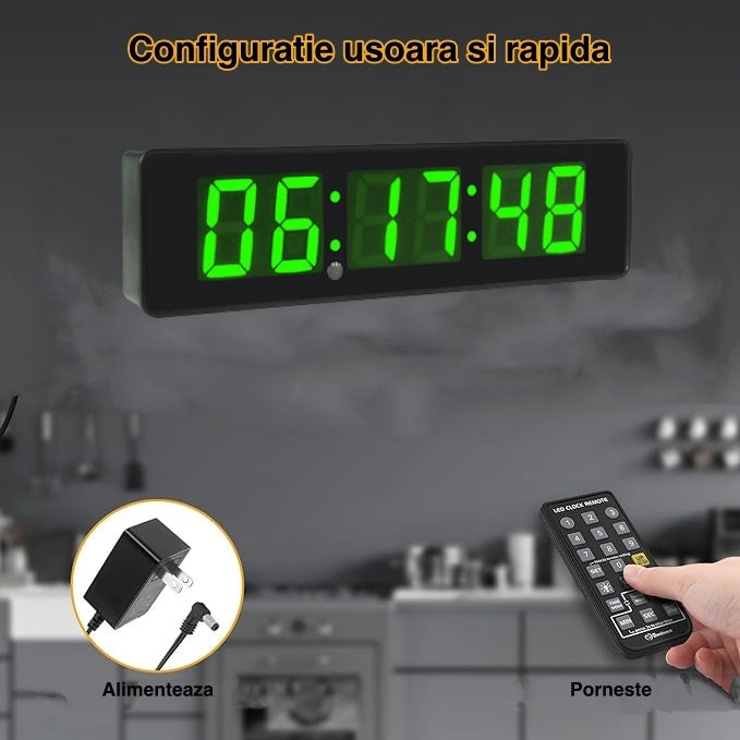 Ceas Digital de Masă și Perete cu LED Verde – Funcții Avansate pentru Birou și Spații Comerciale