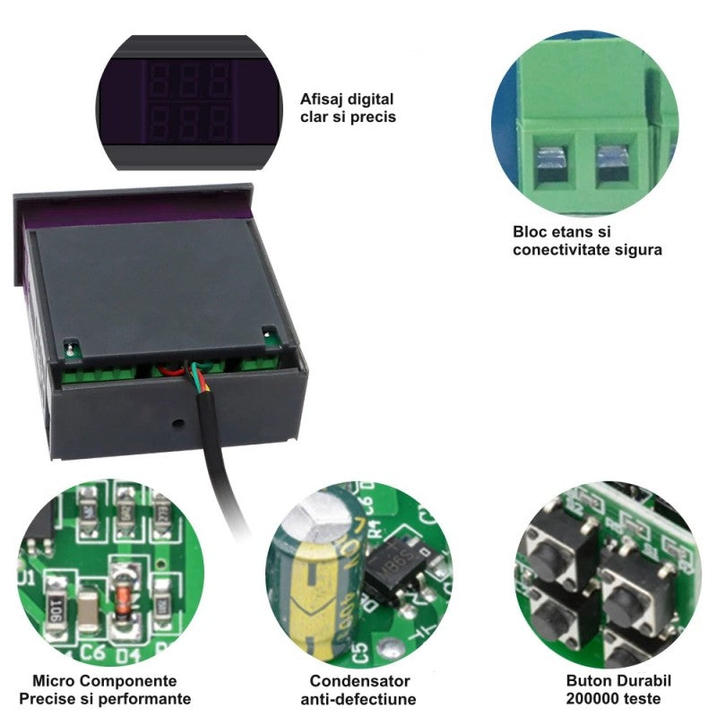 Controlerul digital de temperatură și umiditate SHT-2000 este soluția ideală pentru monitorizarea precisă a mediului interior. Acesta funcționează într-un interval de temperatură de la -20°C la +60°C și umiditate de 0% la 100%, asigurându-se că condițiile optime sunt menținute în orice spațiu, cum ar fi incubatoare, frigidere sau camere de creștere a plantelor. Interfața digitală intuitivă permite setarea rapidă și ușoară a valorilor dorite.