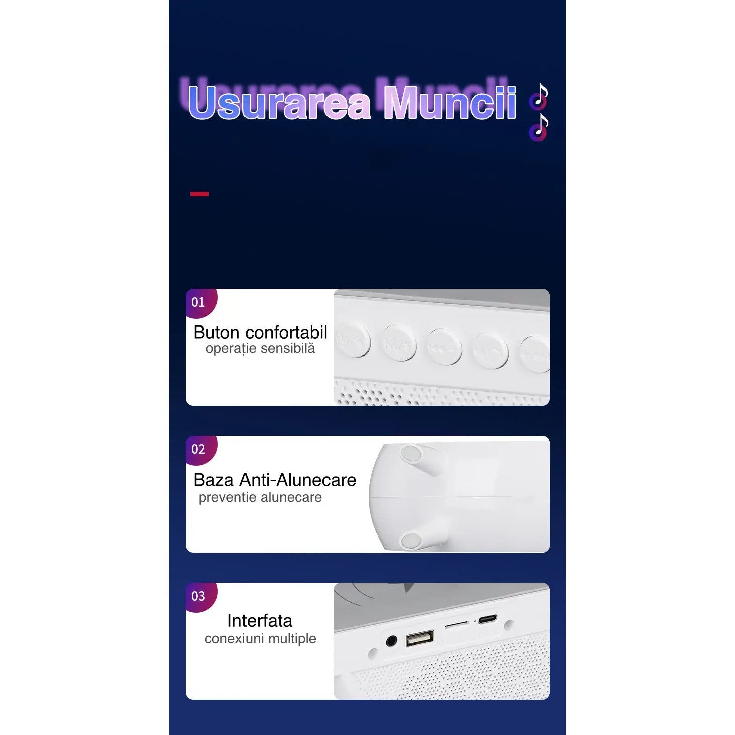 - Conectivitate Bluetooth avansată – Redă muzica fără fir din dispozitivele tale compatibile.
