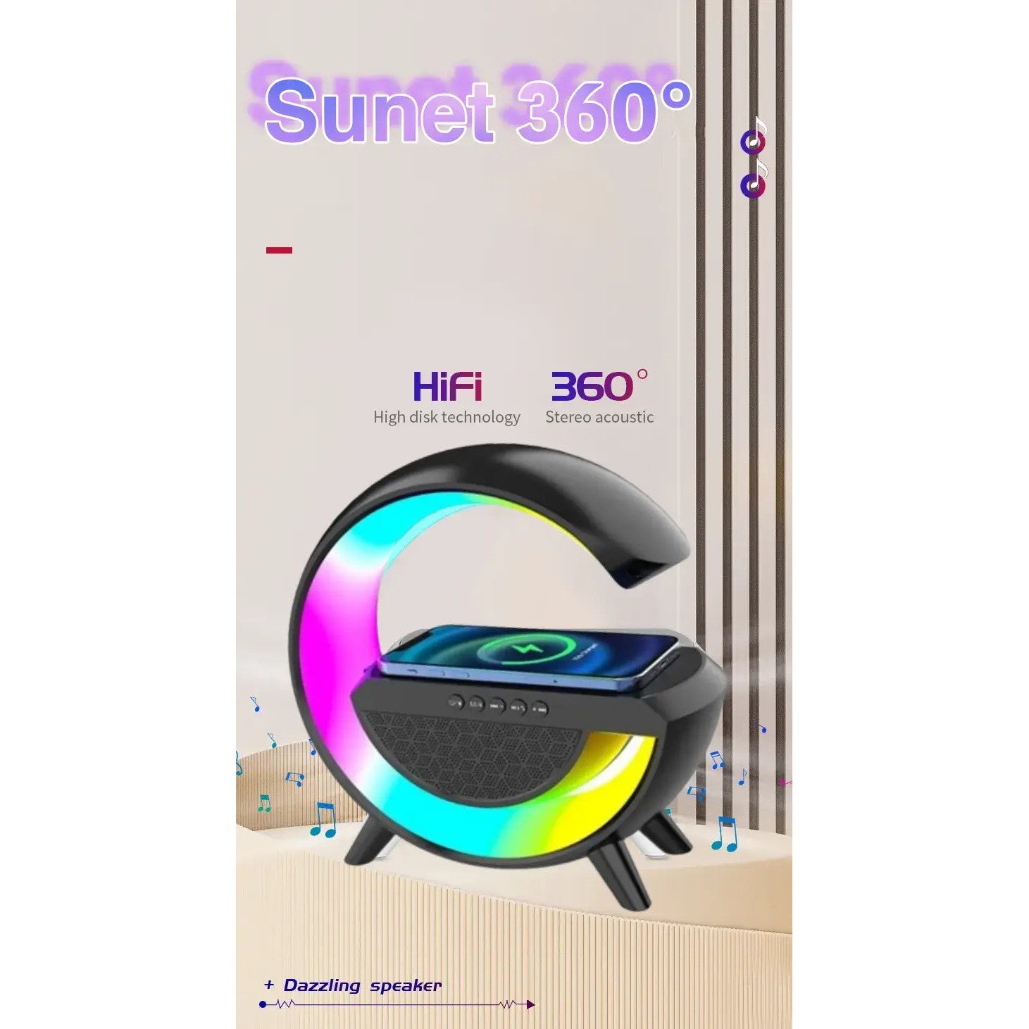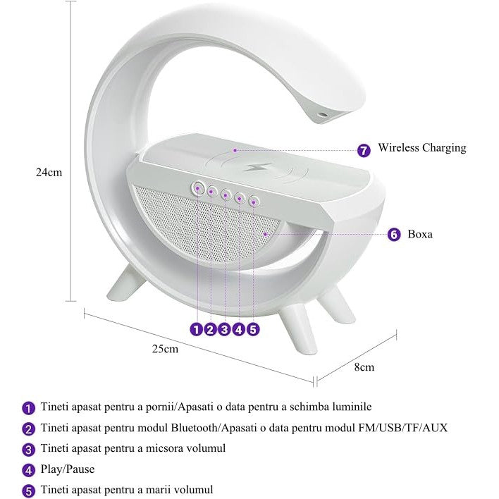 Lampa de Veghe cu Boxă Bluetooth este soluția ideală pentru a aduce un plus de confort și atmosferă în dormitorul sau spațiile tale de relaxare. Această lampă multifuncțională oferă lumină RGB ajustabilă, conectivitate Bluetooth pentru redarea muzicii, încărcare wireless și un radio integrat, toate într-un design elegant și modern. Transformă-ți spațiul într-un loc de relaxare perfect cu ajutorul acestei lampi inovatoare.
