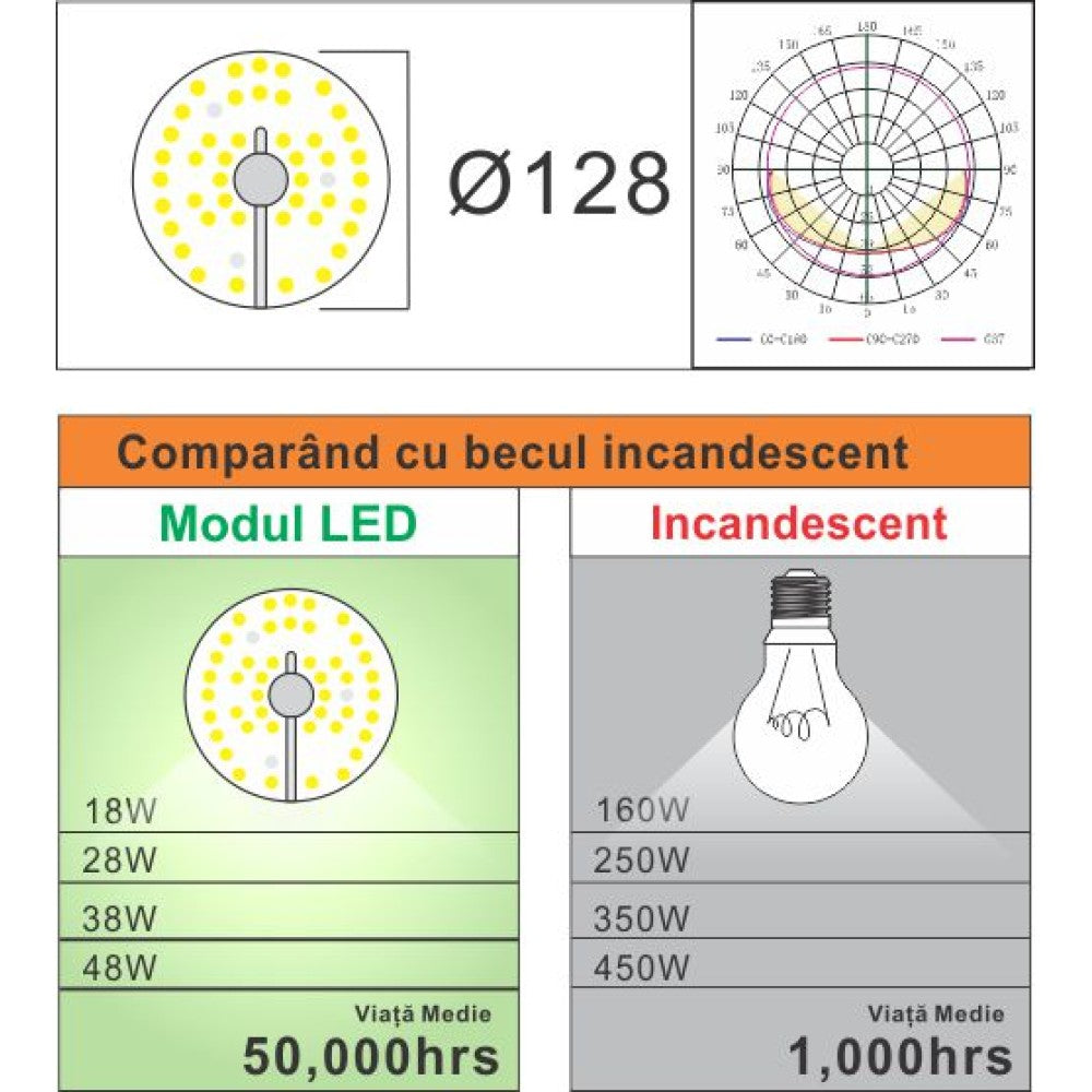 Modul LED Fi128 18W - Iluminat Eficient și Durabil, Echivalent 160W, Culoare 6000K
