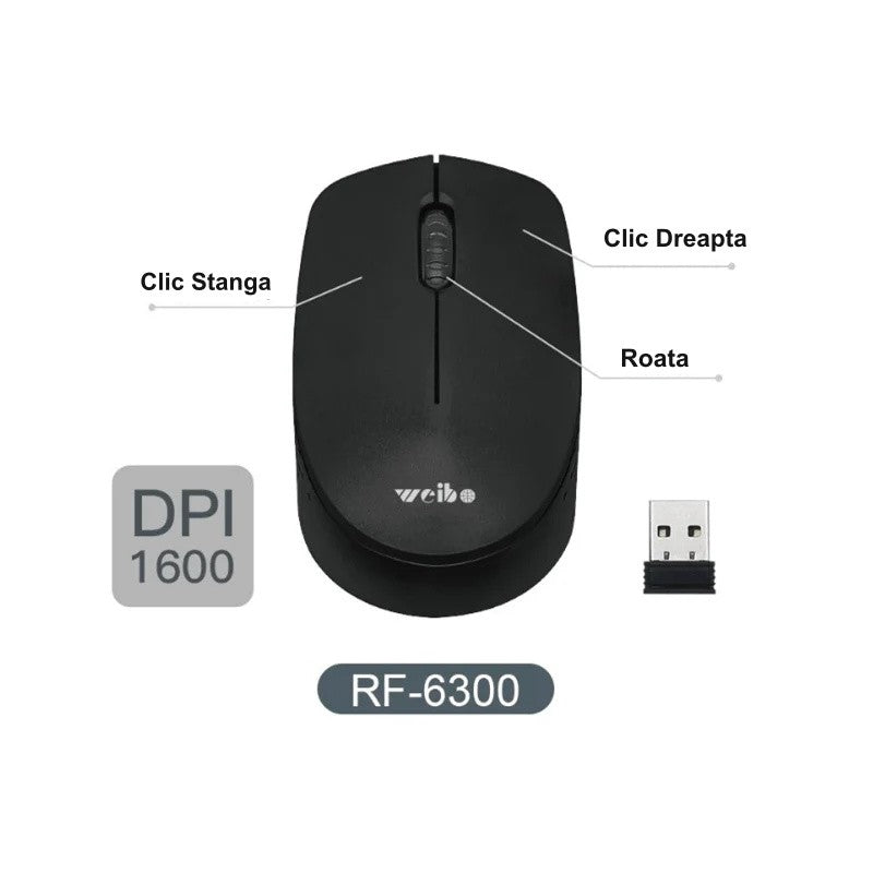 Mouse Optic Wireless RF Weibo 6300 cu Rezoluție 1600 DPI – Mouse Ergonomic pentru Birou și Gaming
