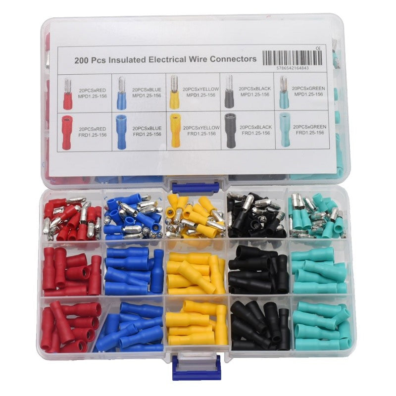 Papuci Electrici Tip Pini Terminali Mama - Tata, Set de 200 Bucăți pentru Conexiuni Electrice Sigurante