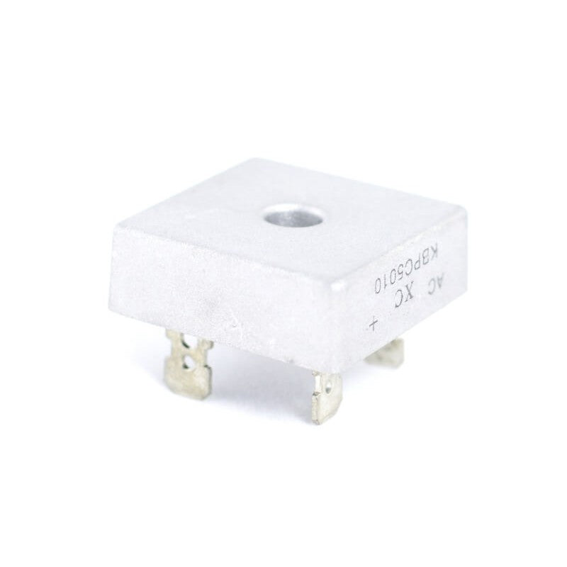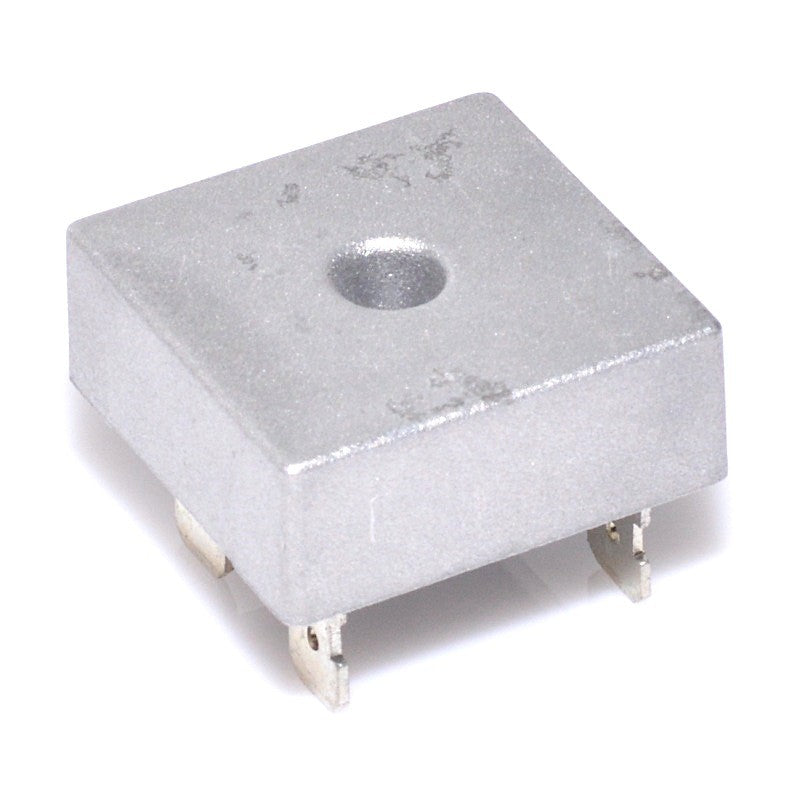 Square aluminum rectifier bridge, used in the field of electronics or technical, domestic and industrial electricity.
