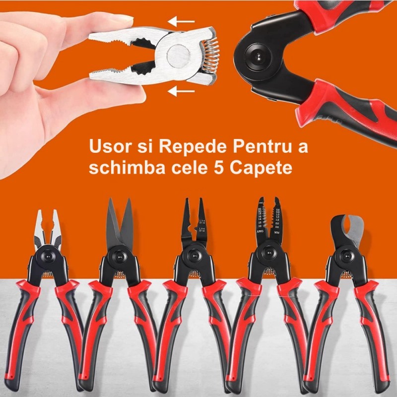 Set Multifuncțional 5 în 1 SJP-8029: Patent, Dezizolat, Clește, Sertizat și Foarfecă pentru Lucrări Diverse